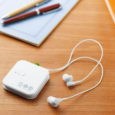 - メリット:環境騒音を消して必要な音は聞こえる。外見が携帯音楽プレイヤーと変わらない。コード巻取り式
